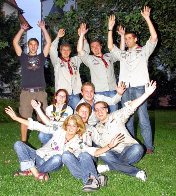| Mit viel Engagement und jeder Menge guter Laune bei der Sache: die Rover des Pfadfinderstammes Don Bosco (hinten von links) Tobias Bopp, Manuel Rebmann, Sven Surowec, Mathias Peter und (vorne von links) Jessica Schmiel, Christine Keilbach, Lukas Rey, Alexander Gross und Daniel Schäfer. |