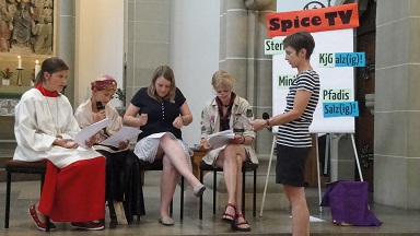 Nach nur zwei Jahren verlässt Gemeindereferent Dominik Gehringer die Seelsorgeeinheit. Dennoch wollten ihn die Gläubigen nicht einfach sang- und klanglos ziehen lassen und verabschiedeten ihn am Samstagabend mit einem vielseitigen Gottesdienst, der unter dem Motto “Ihr seid das Salz der Erde” stand. Schon zu Beginn wurde es spannend. In der Quiz-Show “Spice-TV” mussten sich Vertreter der Ministranten, Pfadfinder, Sternsinger und der KjG den kniffligen Fragen von SWR4-Moderatorin Doris Steinbeißer stellen. Auch hier ging es gemäß des Themas des Gottesdienstes um Salz.
