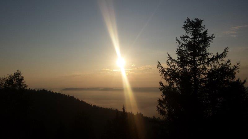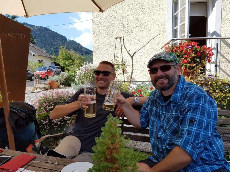 Der weitere Weg führte uns mit geringem Höhenprofil über St. Roman weiter zurück in Richtung Kinzigtal. Am Ende stand uns dann noch der ABstieg über den Eselsweg bevor. Dort galt es innerhalb von wenigen Kilometern ca. 400 Höhenmeter abzubauen. Alle – und vor allem unsere Knie – waren froh, als der Abstieg hinter uns lag. Zum Abschluss der Tour sind wir in Halbmeil eingekehrt. Das gute Essen wurde von einem Zibärtle abgerundet bevor es dann hieß Abschied vom Schwarzwald zu nehmen.