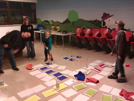 In dieser Woche haben die Gruppenstunden nach den großen Sommerferien wieder begonnen. Die Jupfis haben “riesen-Mensch-ärger-dich-nicht” gespielt. Die Teams Wasserflasche, Halstuch und Holzklötze haben das Team Alufolie (= die Leiter) insgesamt 7x komplett vom Platz gefegt …. worüber sich natürlich niiieemand geärgert hat … 😉